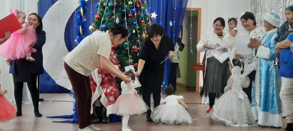 С 26 по 27 декабря в нашем детском саду «Алёнушка» с. Аржаан прошли новогодние утренники. Красиво украшенный зал, нарядная елка, подарки, Дед Мороз и Снегурочка, Леший и Баба Яга, Лисичка, Барбоскины и множество других сказочных персонажей ожидали детей дошкольного учреждения. Ребята погрузились в мир чудес, приключений, невероятных превращений и сюрпризов. Дошколята танцевали, пели песни, читали стихотворения, водили хороводы, с удовольствием участвовали в играх и конкурсах. Дети получили массу положительных эмоций и долгожданные подарки из рук Деда Мороза.