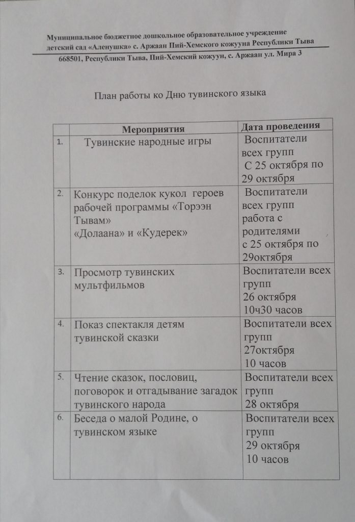Без рубрики Неделя тувинского языка 01.11.2021 / Тувинские народные игры Оюн»Чинчи чажырары» Оюн Кажык «Аьт чарыштырары» Оюн «Аскак-кадай» Конкурс подделок кукол среди родителей героев рабочей программы Торээн Тывам Долаана и Кудерек Просмотр тувинских мультфильмов «Оскус-оол»,»Алдын-кушкаш» Тоол «Ийи куске» Тоол «Кажар-койгун»