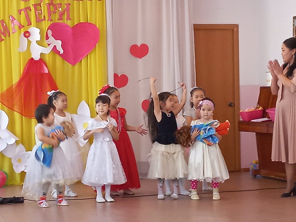 В преддверии праздника – Международного дня мамы в МБДОУ детский сад «Алёнушка» с. Аржаан прошло развлечение, посвященное мамам. Дети с нежностью читали стихи о маме, пели песни, играли в подвижные игры, танцевали и приготовили подарки своими руками.