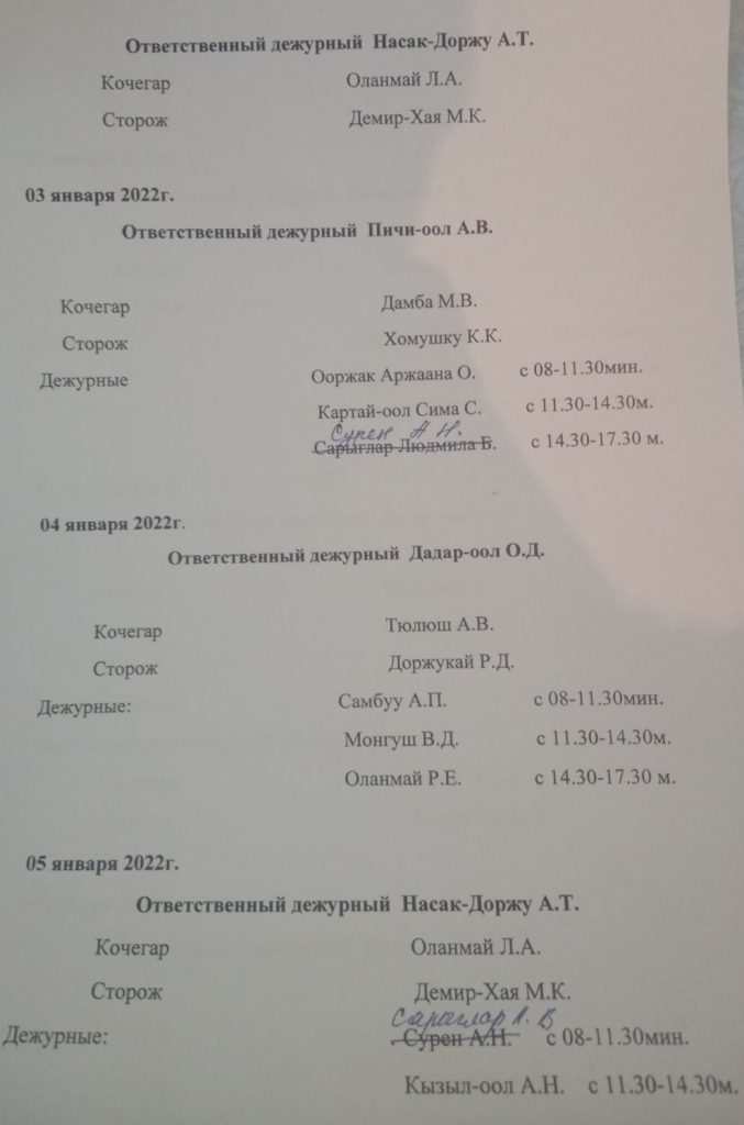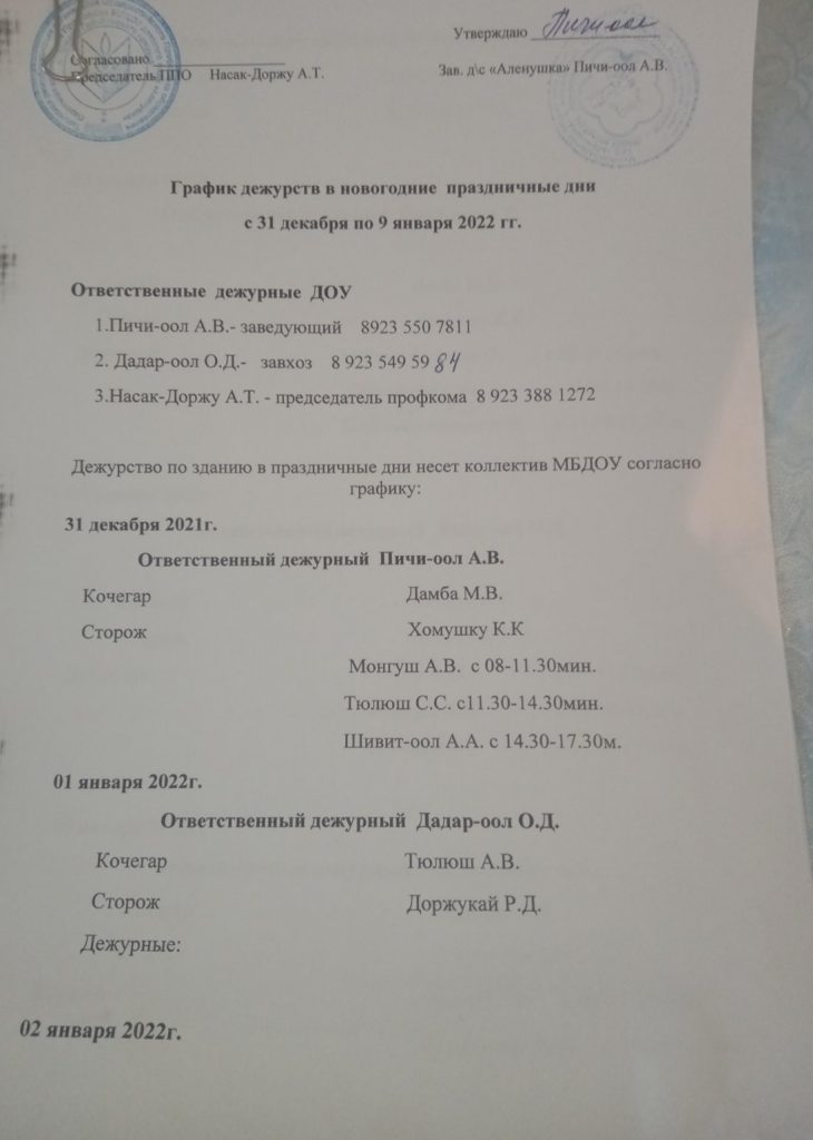Без рубрики График дежурств на новогодние дни с 31декабря 2021года по 09 января 2022 года 30.12.2021 /