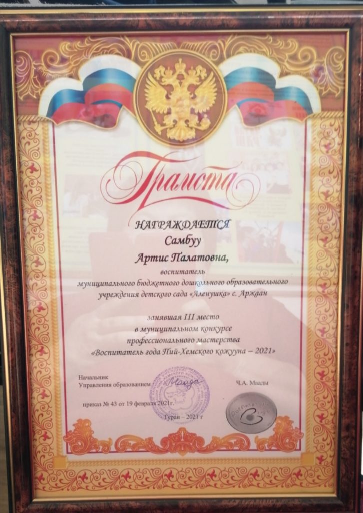 «Воспитатель года Пий-Хемского кожууна» Приказ-4-от-12-01-2021-о-проведении-ПРОФ-МАСТЕРСТВА-на-2021Скачать Воспитатель-года-2021-Приложения-3-4Скачать МАСТЕР-КЛАСС-2021Скачать Самбуу Артис Палатовна Скачать